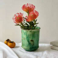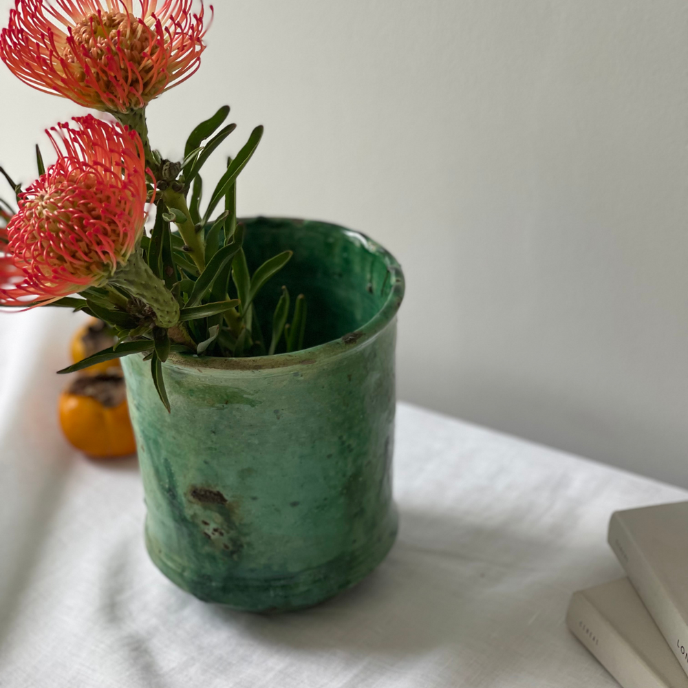 This rustic green Tamegroute vase is handmade in the village of Tamegroute. A one-off piece that will not only showcase any floral arrangement elegantly but will add an instant bolt of uniqueness and individuality to your home.